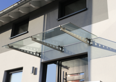 Zaščita pred vremenskimi vplivi: Naši nadstreški so zasnovani tako, da učinkovito ščitijo pred dežjem, snegom in soncem, podaljšujejo življenjsko dobo vaših vhodnih vrat in zmanjšujejo potrebo po čiščenju.